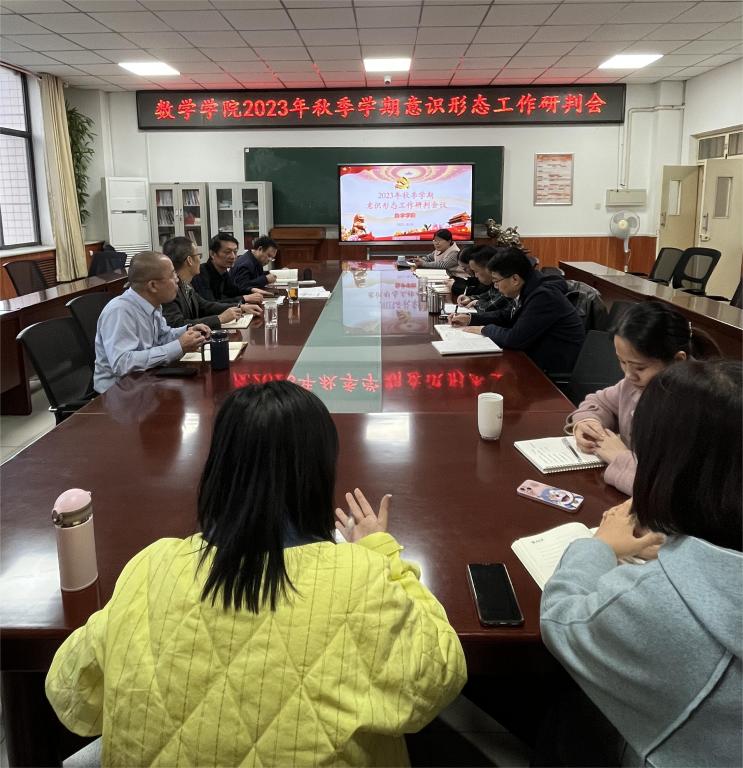 2023年10月31日下午,我院在9号楼六层会议室召开2023年秋季学期意识形态工作研判会。会议由院党委书记薛亚奎主持,院领导班子成员、院党委委员、各支部书记、系主任、辅导员参加了此次会议。