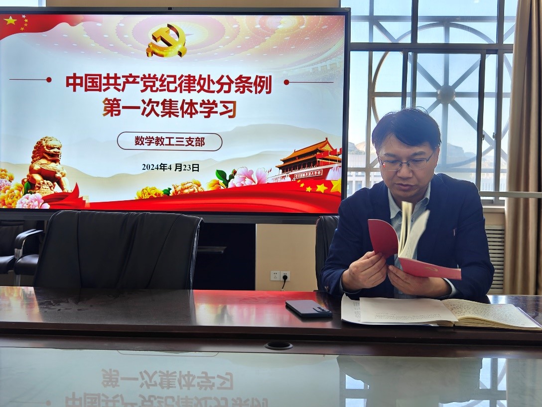 教工第三党支部于4月23日下午在918会议室集中学习新修订的《中国共产党纪律处分条例》部分内容。