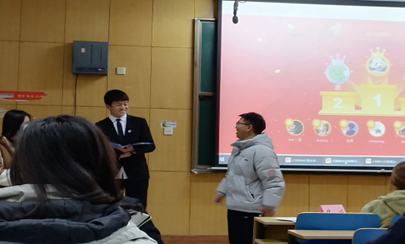 在合唱结束以后,各班青志部依次上台表演节目并进行答辩,介绍本班举行的志愿活动。评委依据活动内容进行提问并进行了评分。紧接着,进行了互动小游戏,并为参加活动的同学送出小礼品。