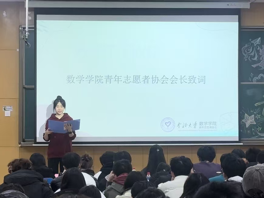 青年志愿者协会会长张泽鑫同学登台致开场词。她回顾志愿工作的初心,并对活动筹备团队的付出表示肯定,以简洁真挚的话语拉开活动序幕。