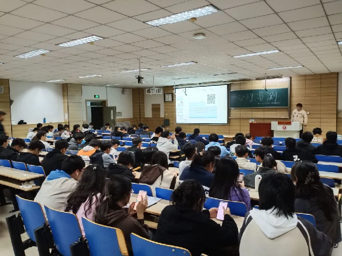 活动前期,心理站的干事们积极撰写策划方案,制作活动PPT,来确保活动的顺利进行。18日当天同学们提前陆续来到相应教室,在心理站人员的帮助下有序入座。活动开始后,心理站负责人整体介绍了本次活动的主要内容,并宣读了心理测评指导语及测评步骤,同学们都认真聆听,安静完成答题。
