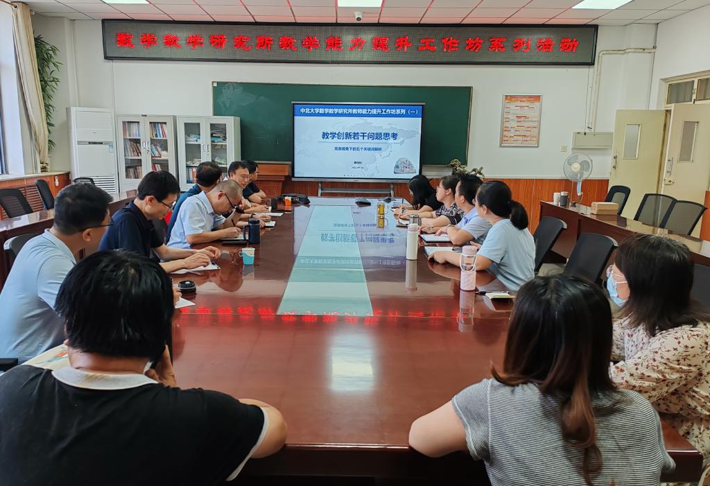 在6层会议室组织了“数学教学研究所教学能力提升工作坊系列活动”研讨会。本次活动由教学副院长王鹏教授主持,薛亚奎书记、吴森林副院长、数学教学研究所所长惠周利老师、各系主任以及十多位一线教师参加了本次工作坊活动,创新创业学院马春生、李世伟老师作为特邀嘉宾参加。