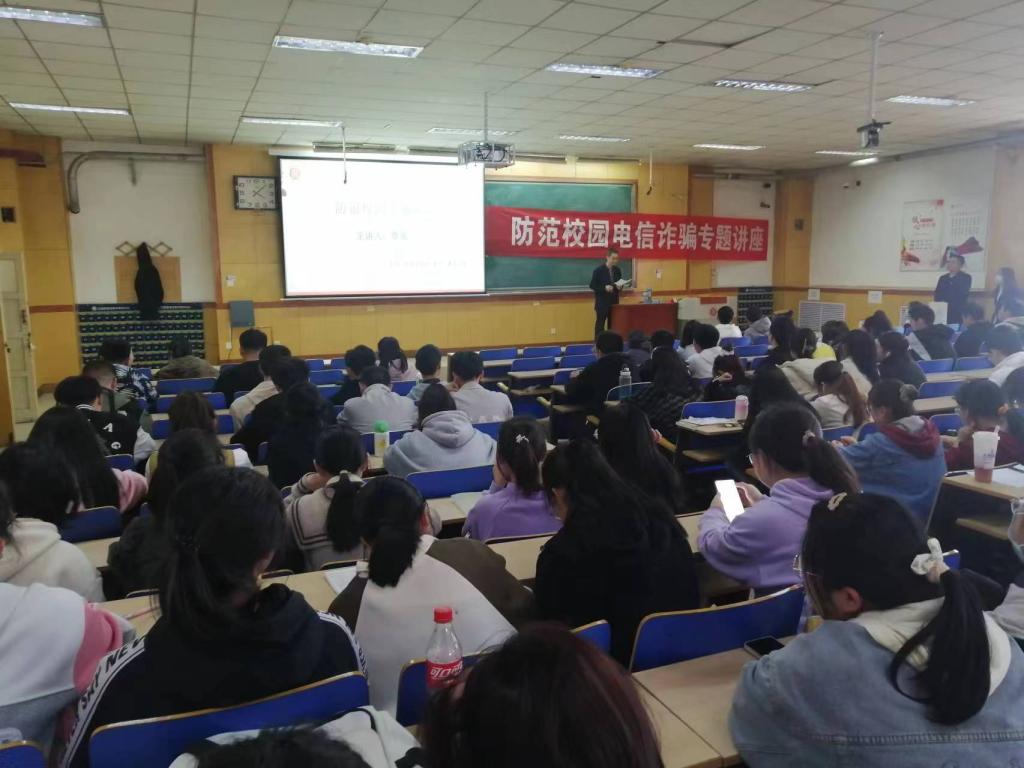 承办的防范校园电信诈骗专题讲座在09402举行。
