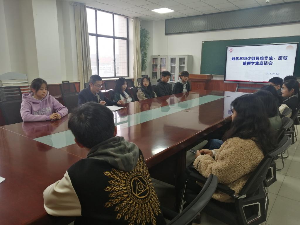 少数民族、宗教信仰学生的心声,全面了解学生的学习、生活情况,不断强化学校全员育人、全过程育人、全方位育人的针对性与实效性,进一步增强少数民族学生、宗教信仰学生的归属感、获得感、成就感和幸福感,4月4日下午,365足球直播