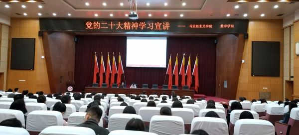 和马克思主义学院在图书馆五层学术报告厅举办学习贯彻党的二十大精神宣讲会,上海交通大学马克思主义学院杜玉华教授作宣讲报告,会议由马克思主义学院院长赵笑蕾同志主持,365足球直播