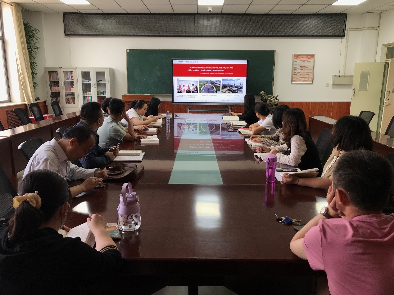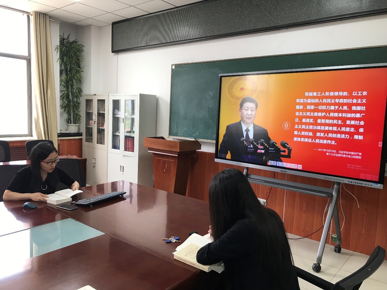 5月25日下午,教工第二党支部全体党员在9号楼6层会议室开展学习贯彻习近平新时代中国特色社会主义思想主题教育第五次专题学习。由麻雅娴同志和赵东霞同志分别就“坚持全面深化改革”和“推进社会主义民主建设,发展社会主义政治文明”为主题带领全体党员共同学习。