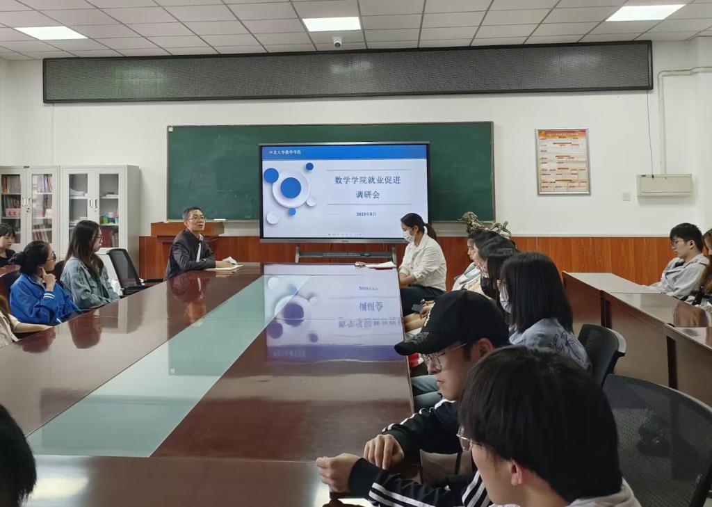 在9号楼6层会议室召开2023届毕业生就业促进调研会,会议由党委副书记孙俊伟主持,辅导员常璇及2023届未就业学生代表参加了会议。