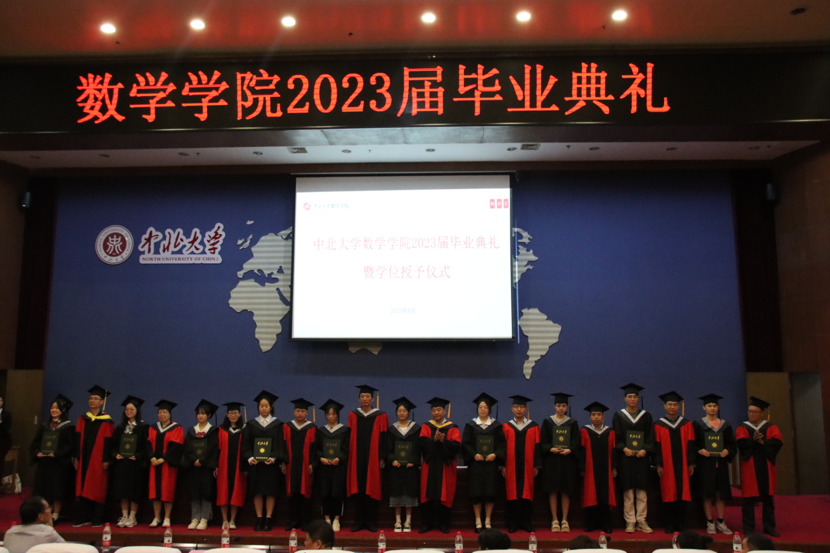 典礼在庄严的国歌中正式拉开序幕,院党委书记薛亚奎宣读优秀毕业生名单,主席台各位领导为中北大学优秀毕业生和365足球直播