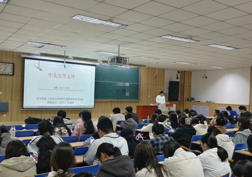 会上曹老师为大家讲解了参与创新创业活动的意义,并对《中北大学本科生创新创业学分认定管理办法》文件中创新创业实践学分的几种获取方式及认定细则进行了详细解读。对于同学们关心的 “小学期”实践能力培养计划,曹老师根据学校“小学期”项目实施方案要求,结合365足球直播