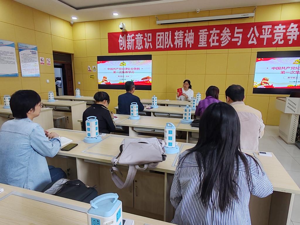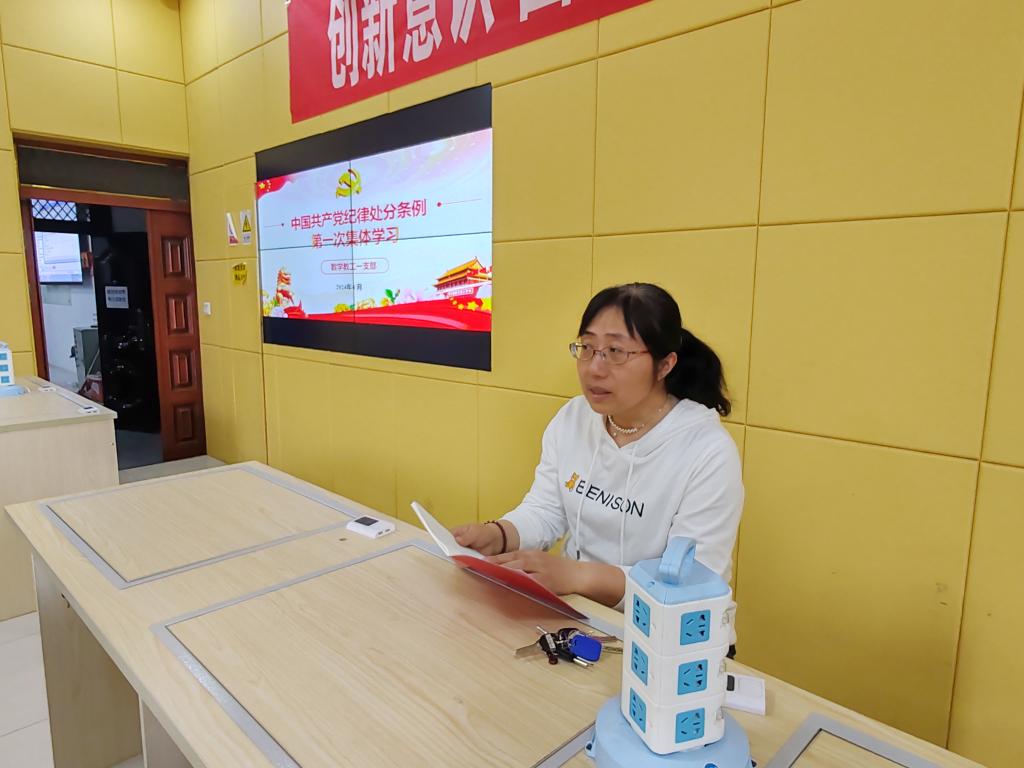 教工一支部在九号楼一层创新与演示实验室对新修订的《中国共产党纪律处分条例》进行第一次集中学习。新修订的《条例》共158条,与2018年《条例》相比,新增16条,修改76条。本次由曹文军同志带领大家学习第一篇总则中的一至五章内容,共四十八条内容。