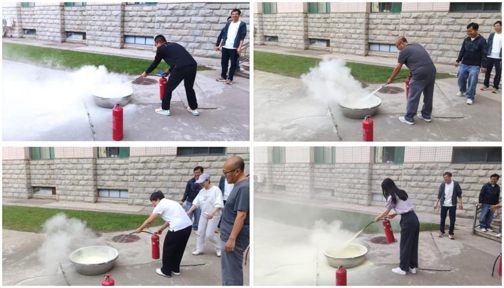 撤离至安全区域后,两位老师现场演示了灭火器、消火栓等消防设施的正确使用方法,并邀请师生亲自上手操作,进行灭火实战演练。师生们积极参与,在实践中熟练掌握了消防器材的使用技巧,提升了初起火灾应急处置的整体技能。