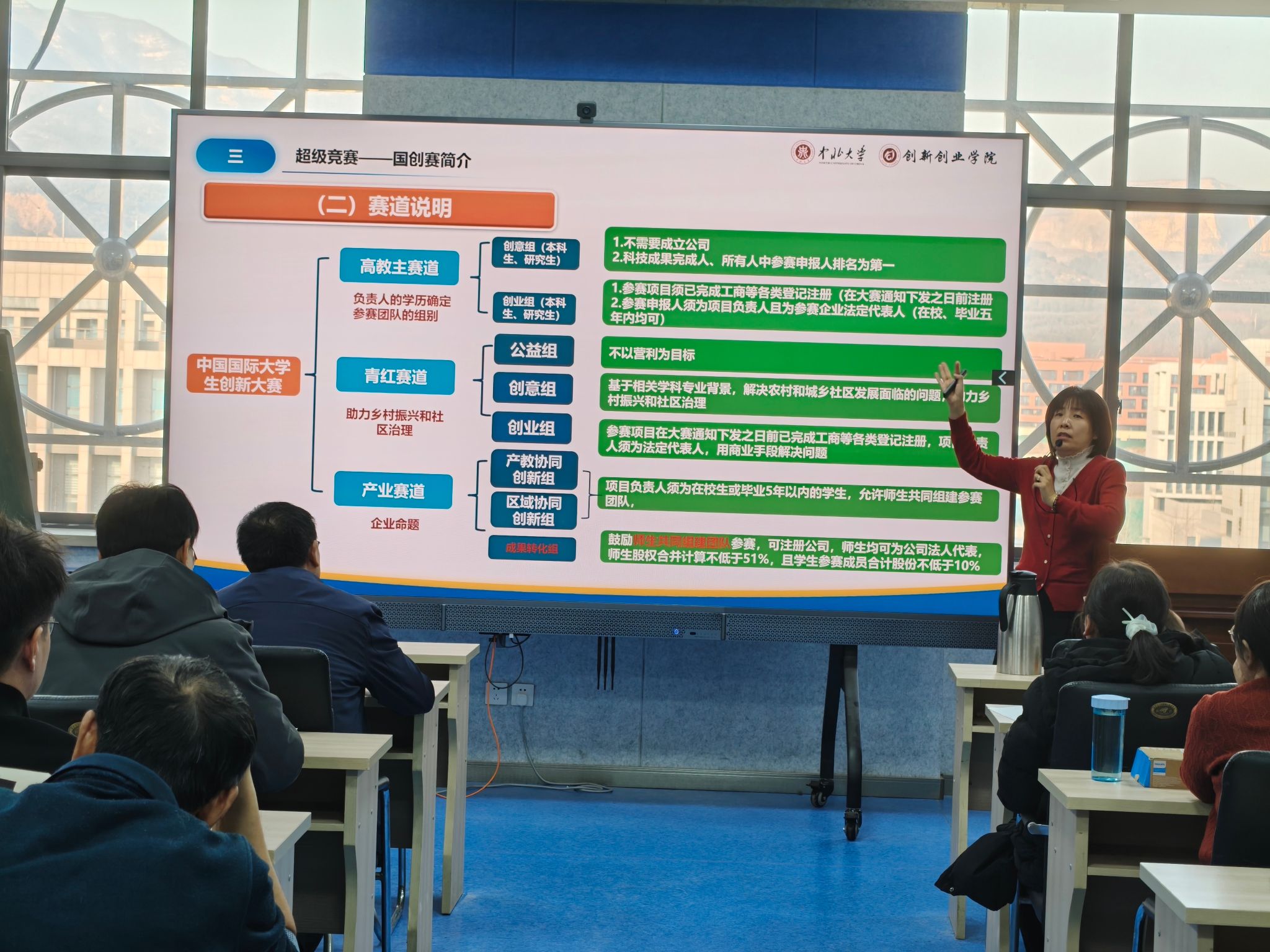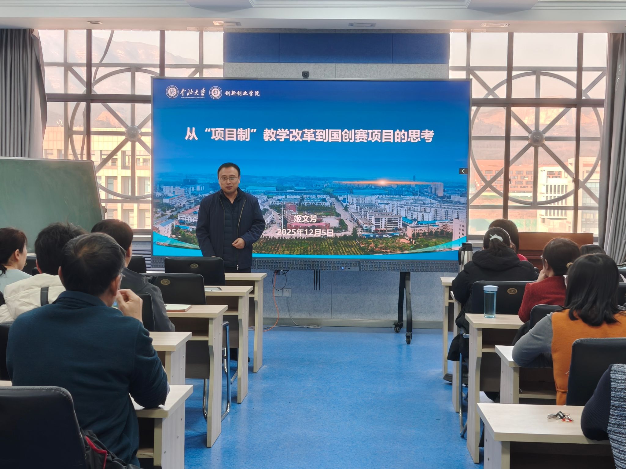特邀创新创业学院副院长姬文芳老师,为全院教师开展大创项目申报与学科竞赛专题培训讲座。讲座由副院长王鹏主持。