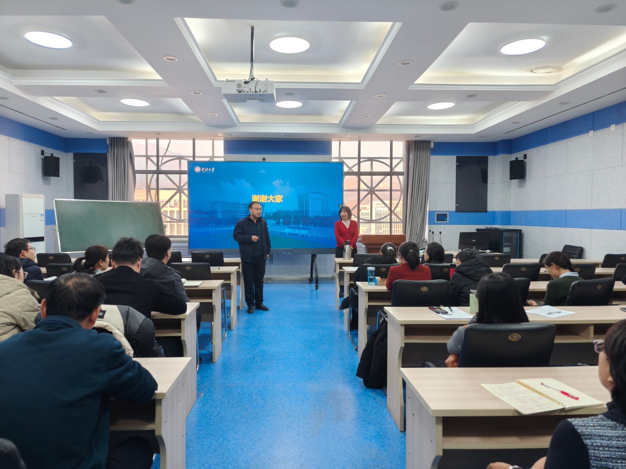 最后,王鹏副院长对姬文芳院长的精彩分享致以诚挚感谢。他强调,全体教师要以此次讲座为契机,将双创教育理念深度融入日常教学与科研指导全过程,充分挖掘数学学科在量化分析、模型构建等领域的独特优势,主动对接双创赛事赛道需求,积极为学生搭建创新实践平台,做好项目申报的“引路人”与竞赛备赛的“护航者”,鼓励更多学生投身双创实践,以赛促学、以赛促创,切实提升学院人才培养的创新实践成色,力争在2026年大创项目和学科竞赛中实现新的突破。